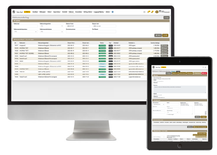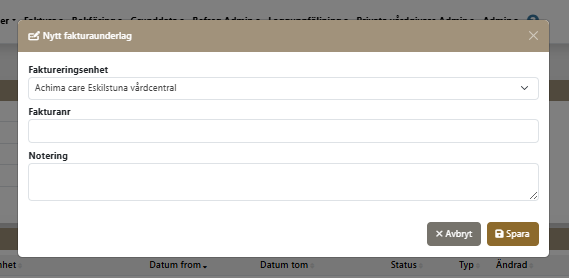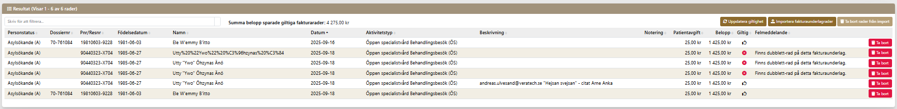 Fakturaunderlag gör det möjligt för vårdgivare inom regionen att registrera genomförd vård direkt i Vera Asyl med kontroll av asylstatus, automatisk prissättning och registrering av eventuell egenavgift. Genomförda hälsoundersökningar som rapporteras i Vera Asyl Hälsoplan läggs automatiskt in i fakturaunderlagen.