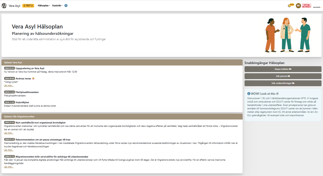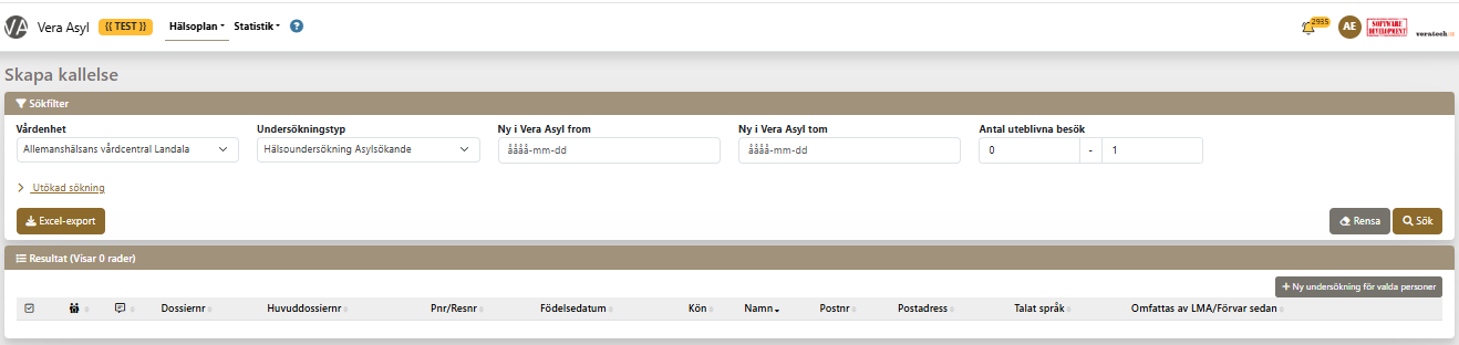 Det finns också möjlighet att ta ut statistik över hälsoundersökningar som registrerats i Hälsoplan i Vera Asyls Statistik-funktion.
