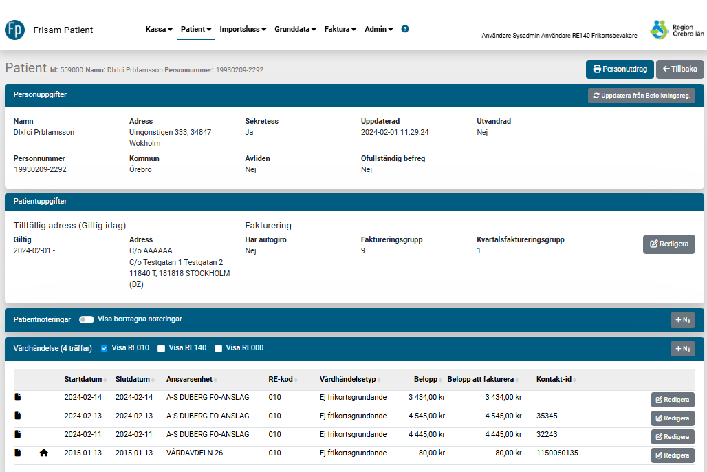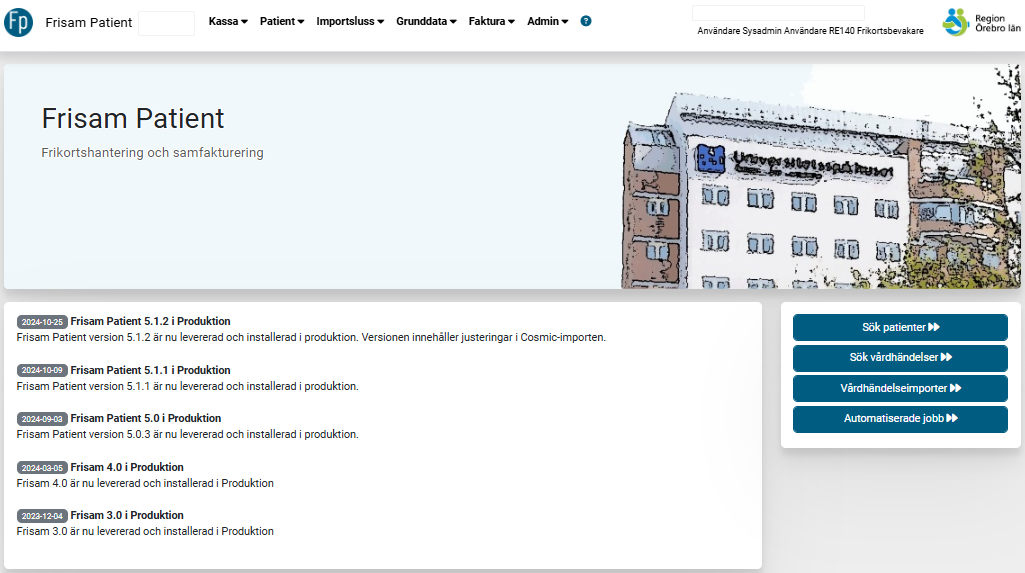 Frisam Patient är vårt system för att hantera samlingsfakturering av patienter. Systemet samlar in fakturaunderlag från olika vårdsystem och möjliggör därmed samlingsfakturering av patienter som har flera vårdtillfällen, även om de registrerats i olika vårdsystem.