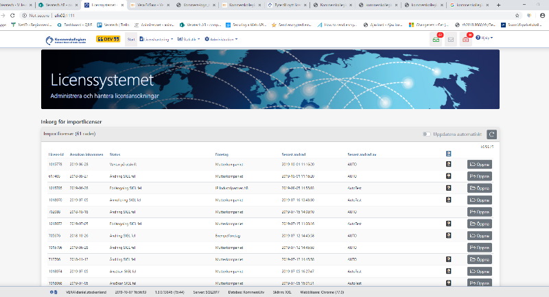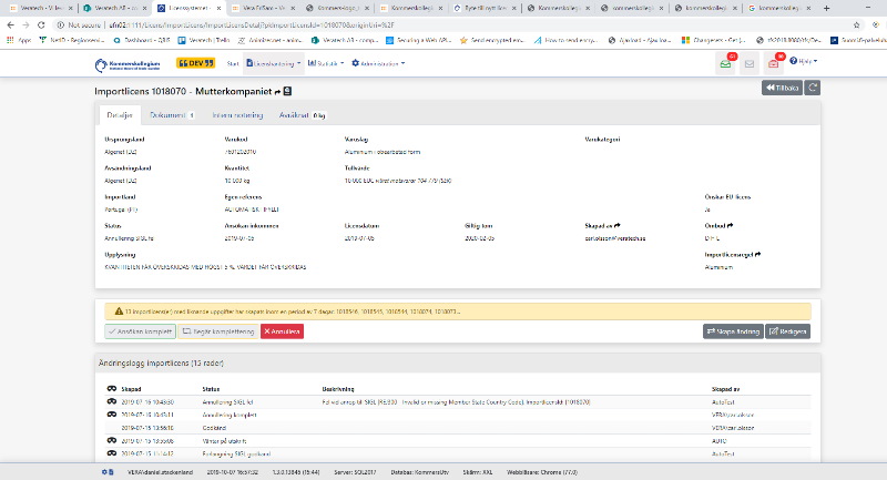 Från Tullverket kommer sedan avräkningar på importerat gods som passerat tullen. Informationen finns tillgänglig både för handläggarnapå Kommerskollegium och importörerna.
