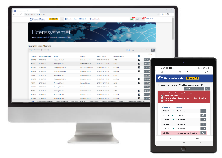 Kommerskollegium är Sveriges myndighet för utrikeshandeln, Europeiska unionens inre marknad och handelspolitik. Under 2018 utvecklade Veratech ett nytt system för Kommerskollegiums handläggning av importlicenser för stål och aluminium. Systemet hade produktionsstart december 2018.
