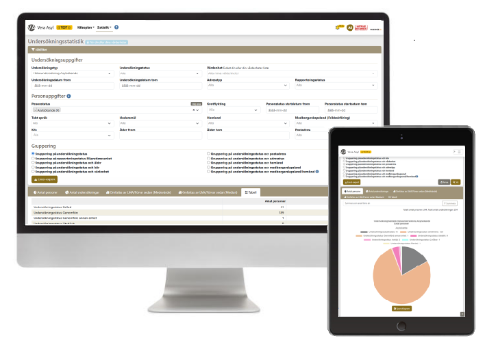 Vera Asyl Statistik möjliggör statistik- och datauttag av dels ansökningar och ersättningar som gjorts hos Migrationsverket samt statistik över Vera Asyls personkrets och utförda undersökningar, kallelser etc.